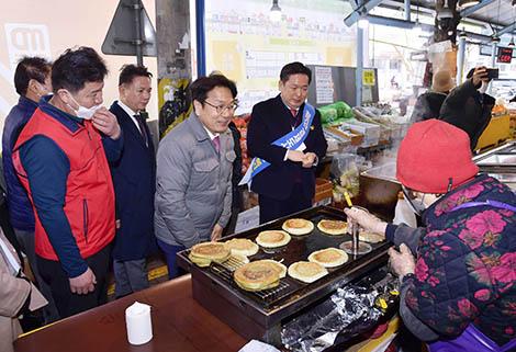 간담회가 끝난 뒤 강 시장은 온누리상품권으로 옥수수차·간식·설 명절 제수용품 등을 구매하고 시장 상인들을 격려했다. 시장을 찾은 시민들과 설 명절 덕담을 나누기도 했다.