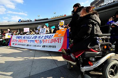 아울러 \"지난해 9월 정부가 발표한 \'제4차 교통약자 이동편의 증진계획\'에는 세부 정책 과제로 \'휠체어 탑승이 가능한 고속·시외버스 도입 확대\'가 포함돼있다\"며 \"장애인 이동권 문제는 각 지자체, 교통사업자가 해결해야 할 과제로 떠올랐지만 방기하고 있다\"고 비판했다.