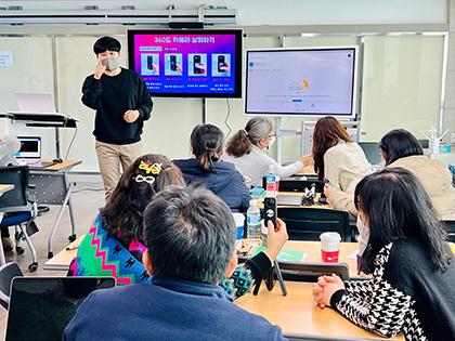 또 ‘수업과 소통을 위한 에듀테크 활용 직무연수’를 함께 개설했다. 수업을 위해 개발된 다양한 에듀테크 활용 수업 사례와 더불어 교실 및 수업 상황별 활용 가능한 에듀테크 플랫폼을 총망라한 실습 시간을 마련했다.
