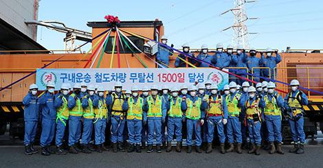 광양제철소가 구내 용선운반차(TLC, Torpedo Car)와 기관차의 무탈선 운행 1500일 신기록 달성을 기념하는 행사를 열었다.