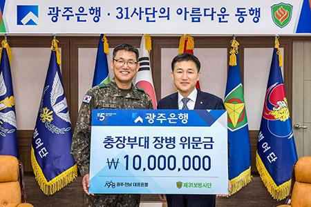 광주은행은 정기적으로 제31보병사단에 위문금을 전달하고 있으며 상호협력 협약을 체결하고 캐시백과 다양한 서비스를 제공하는 제휴카드를 출시하는 등 금융 우대 서비스 제공에 적극 협력하고 있다.