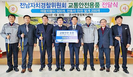 전달한 교통안전 용품은 야간 이동 시 안전한 보행을 도와주는 야광 지팡이 500개, 전동 차량·휠체어 부착용 안전 덮개 200개다.