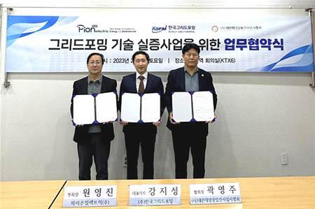 ㈜한국그리드포밍은 최근 파이온일렉트릭, 대한태양광발전사업자협회와 그리드포밍 설비의 실증사업을 위한 업무협약을 체결했다고 6일 밝혔다.