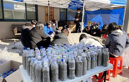 비영리민간단체 \'참여와 나눔의 주민공동체 마을발전소\'는 올해 1월부터 북구 용봉동 중흥S클래스 402가구 입주민들과 함께 \'물 절약 페트병\' 캠페인을 펼쳐 한 달 간 물 사용량이 지난해보다 999t 줄었다고 10일 밝혔다. (사진=마을발전소 제공)