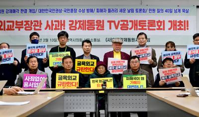 아울러 \"나아가 정부는 강제동원 문제와 관련, 방송사가 주관하는 2차 토론회를 속히 열라\"며 \"지난달 12일 열린 국회공개토론회는 주제, 형식, 정보제공 등 모든 면에서 졸속, 날림이었던 만큼 재차 토론회를 열라\"고 주장했다.
