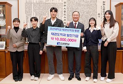 조선대 태권도학과는 후배들을 위해 매년 기부를 하고 있으며 조선대는 학교 발전을 위해 사용할 예정이다.