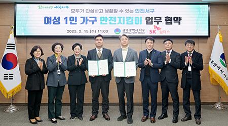 서구청과 SK쉴더스는 관내 여성 1인 가구가 안심하고 생활할 수 있도록 안전지킴이 지원사업에 유기적으로 협력하기로 약속했다.