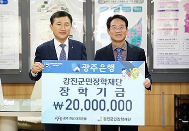 한편, 광주은행은 광주은행장학회를 설립해 42년 동안 4000여 명의 지역 장학생에게 장학금을 지급하는 등 인재육성을 위한 적극적인 활동을 펼치고 있으며 강진군민장학재단에 매년 1천만 원을 기탁해 지금까지 총기탁금이 1억6400만 원에 이른다.