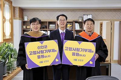 박우량 신안군수는 “고향사랑기부제가 성공적으로 안착할 수 있도록 기부에 동참해주신 이호균 총장, 우기종 부총장님께 감사드린다”며, “신안을 아끼고 사랑하는 마음이 지역사회 발전으로 이어질 수 있도록 최선을 다하겠다”고 말했다.