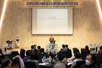 광주시교육청이 22~23일 교육활동 보호 및 학교폭력 예방 법률지원단 운영을 위해 광주 전체 학교장 대상 워크숍을 개최했다.