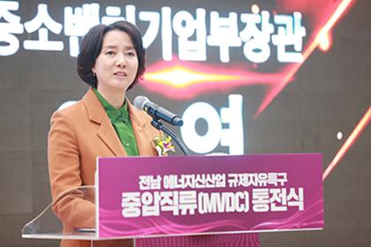 이영 중소벤처기업부(중기부) 장관은 2일 나주 에너지신기술연구원에서 열린 전남 에너지신산업 규제자유특구 실증 인프라 구축 기념식에 참석했다.