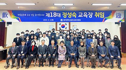 광주동부교육지원청청 제18대 정성숙 교육장이 2일 오전 대회의실에서 전 직원이 참석한 가운데 취임식을 갖고 본격적인 업무를 시작했다.