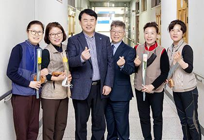 이날 오전 이정선 교육감과 장우삼 부교육감 등 간부들은 각 과 사무실을 방문해 직원들을 격려하며 미리 준비한 빵과 장미꽃을 전달했다.