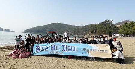 광주학생해양수련원이 10일 발포해수욕장 일대에서 ‘청정한 바다지킴이’(이하 청바지) 캠페인 일환으로 광주광역시교육연수원과 함께 해안정화활동을 실시했다.