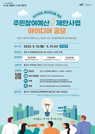 광주 광산구(구청장 박병규)는 13일부터 5월31일까지 2024년도 ‘주민참여예산 제안사업 아이디어’를 공모한다고 밝혔다.