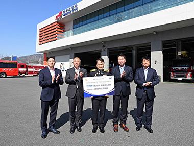 현대차그룹은 이날 소방 공무원들의 휴식과 회복을 위한 \'재난현장 소방관 회복버스\' 10대를 소방청에 기증했다. 효성그룹은 순직 소방 공무원 유자녀 장학금, 현직 소방 공무원들의 근무 환경 개선 등 소방 공무원 복지 증진을 위한 기부금을 전달했다.