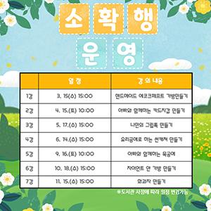 김미라 도서관운영과장은 “소·확·행 문화강좌를 통해 지역주민들이 도서관에서 건전한 여가 문화활동을 즐기면서 소소한 행복도 느낄 수 있는 귀한 시간 되길 바란다”고 말했다.
