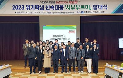 광주서부교육지원청이 17일 대회의실에서 학교폭력 및 위기학생에 대한 신속 대응 및 지원 확대를 위한 ‘2023 서부부르미’ 발대식을 개최했다.