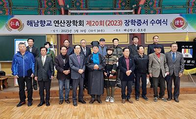 해남향교(전교 장성년)에서는 3월 16일 충효관에서 연산장학회 2023년도(제20차) 장학증서 수여식을 개최했다.