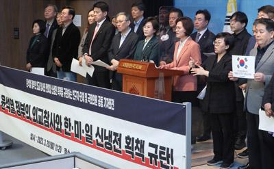 더불어 \"윤 대통령은 이렇게 줄줄이 내주는 게 어떻게 국익에 보탬이 되는지, 왜 일본이 내민 청구서에 한마디 대꾸도 못했는지 입이 있으면 변명해 보라\"고 성토했다.