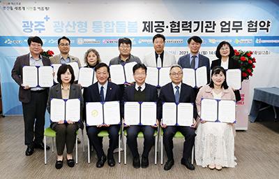 광산구는 20일 구청 2층 상황실에서 ‘광주+ 광산형 통합돌봄사업’ 첫 출발로 8개 제공기관 및 3개 협력기관과 상생 업무협약을 체결했다.