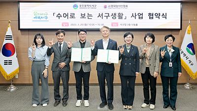이번 협약은 무장애도시 서구 조성 및 장애인 일자리 창출의 일환으로 이뤄졌으며, 양 기관은 청각·언어장애인의 공공정보 접근성을 보장하기 위해 각종 정책 및 생활민원 정보를 수어 동영상으로 제작해 제공하기로 했다.