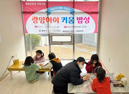 전남에서 광양시가 유일하게 운영 중인 돌봄공동체 지원사업은 공적 돌봄 공급의 한계를 보완하기 위해 자발적으로 모인 이웃과 부모가 함께 마을 아이들을 돌보는 ‘주민주도형 돌봄’ 사업이다.