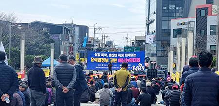 해남군농민회는 지난 21일 해남군청 앞에서 \'윤석열 정부 규탄 해남 농민대회\'를 개최했다.