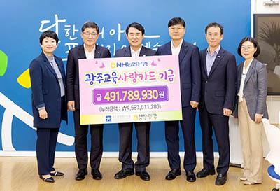 광주시교육청이 24일 15시 NH농협은행으로부터 ‘광주교육사랑카드’ 사용으로 발생한 적립금 4억9179만 원을 전달받았다.
