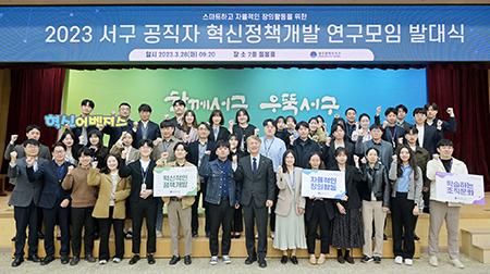 서구는 조직 내 학습·연구 문화 정착을 통한 공직자 전문성 및 문제해결 능력을 강화하고 다양한 방식의 정책 개발로 구정 발전을 도모하고자 MZ세대 7~8급 실무자로 구성된 혁신어벤져스와 경제, 환경, 복지 등 다양한 현안 과제를 주제로 한 정책개발 연구모임 9팀을 선발했다.