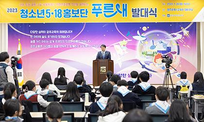광주시교육청이 지난 28일 시교육청 대회의실에서 청소년 5·18 홍보단 ‘푸른새’ 발대식을 개최했다.