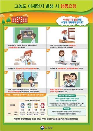 시교육청은 미세먼지 ‘주의보’ 또는 ‘비상저감조치’ 발령 시 전체 학교로 신속히 상황을 전파한다. 학교 현장에 ▲실외활동 자제 ▲공기정화장치 가동 ▲보건용 마스크 착용 권고 등을 안내해 미세먼지에 대응할 수 있도록 돕는다. 특히 미세먼지 ‘경보’ 이상 발령 시 부교육감을 본부장으로 선임한 비상대책반을 구성한다. 비상대책반은 각급 학교 ▲민감군 학생 보호 ▲휴업명령 등 학사운영 조정·관리 등의 대응을 지원하고 총괄하게 된다.