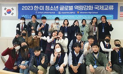 전남도교육청국제교육원(이하 국제교육원)은 지난 27일부터 29일까지 2박 3일 일정으로 ‘2023 한미 청소년 글로벌 역량강화 국제교류 프로그램’을 운영했다. 미국 측 참가자는 LA 알함브라교육청 소속 학생 12명으로, 전남외고 2학년 학생 12명과 함께 본 프로그램에 참여했다.