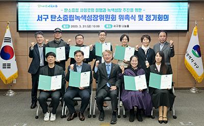 이날 첫 회의는 위촉식, 공동위원장 선출, 2023년 서구 탄소중립 실천계획 보고 순으로 진행되었고, 서구의 탄소중립 추진 방향에 대해 논의했다.