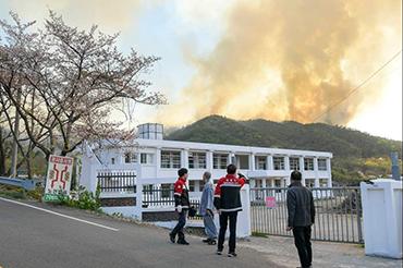 4일 오전 5시에는 ‘산불 3단계’로 격상시키고, 일출 후 진화헬기 12대와 진화차량 42대, 소방대와 31사단 군인 100명 등 인력 462명을 집중 투입해 산불 진화에 총력을 기울이고 있다.