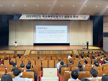 광주서부교육지원청이 지난 3일 서부 관내 교감 및 생활부장, 생활교육 담당 교사들로 구성된 초·중·고·특수학교 전담기구 위원 대상으로 \'2023 학교폭력전담기구 연수\'를 실시했다.