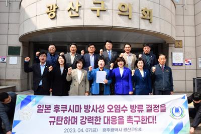 광산구의회는 7일 성명서를 발표하고 \"일본의 후쿠시마 원전 오염수 방류는 인접 국가의 국민건강과 생명에 대한 위협이자 전 인류의 안전을 뒤흔드는 테러 행위\"라고 규탄했다.
