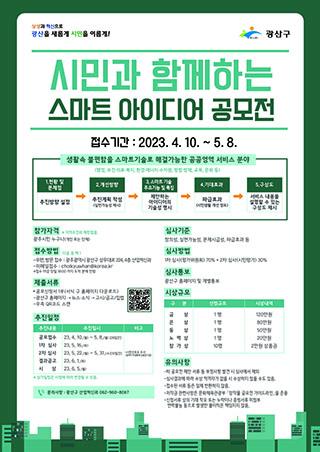 광주에서 처음으로 추진하는 ‘스마트 아이디어’ 공모전으로, 광산구뿐만 아니라 광주지역 전체 다양한 도시문제 해결을 위한 스마트 기술 활용 정책을 발굴한다는 취지다.
