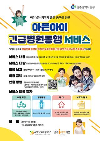 광주 동구(청장 임택)는 이달 1일부터 시행에 나선 광주다움 통합돌봄 사업 일환인 ‘아픈 아이 긴급 병원 동행 서비스’가 양육자들 사이에서 단기간에 입소문이 나며 높은 관심을 끌고 있다고 밝혔다.