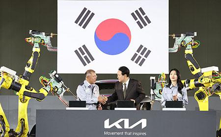 현대차그룹은 11일 경기 화성시 기아오토랜드에서 윤석열 대통령, 정의선 현대차그룹 회장, 송호성 기아 사장 등이 참석한 가운데 고객 맞춤형 전기차 전용 공장 기공식을 열고, 이 같은 내용의 중장기 전략을 발표했다.