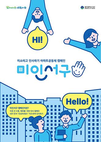 광주시 서구(청장 김이강)가 공동주택 내 따뜻한 소통을 유도하기 위해 아파트공동체 인사하기 캠페인 ‘미소띠고 인사하기(미·인·서구)’를 추진한다.