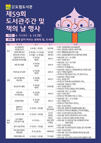 도서관주간 및 책의 날 행사에 관한 자세한 사항은 전남도립도서관 누리집(https://lib.jeonnam.go.kr)에서 확인하거나 전화(061-288-5232)로 문의하면 된다.