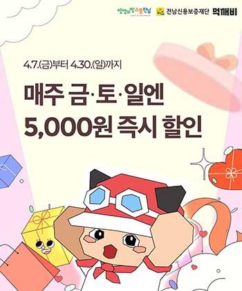 전남도는 매출 100억원 달성을 위해 현재 신규 회원 1만원 할인이벤트, 4월 한 달 동안 금~일요일 등 주말 주문고객 5000원 할인 등 다양한 이벤트를 진행하고 있다. 5월에는 가정의 달을 맞아 매일 할인이벤트를 추진할 계획이다.