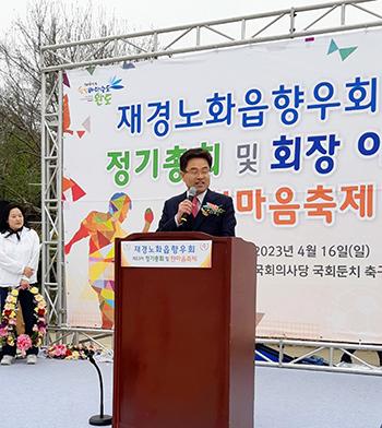 완도 노화읍 향우회는 지난 16일 오전 10시 서울 여의도 국회둔치 운동장에서 이목·천구·넙도 등 19개 마을(이장)이 참석해 제53차 재경 노화읍 향우회 이·취임식을 가졌다. 이날 제27대 회장에 포천 출신의 정재윤 씨(세무법인 신원 대표)가 취임했다.