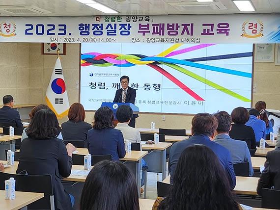 광양교육지원청은 청렴도 향상을 위한 행정실장 부패방지 교육을 실시했다.