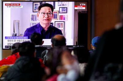 23일 오전 서울 중구 서울역에서 시민들이 송영길 더불어민주단 전 대표의 2021년 전당대회 돈봉투 의혹 관련 뉴스를 시청하고 있다.
