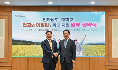 순천대학교는 ‘천원의 아침밥’ 사업의 안정적인 추진과 전남쌀 소비 촉진을 통한 상호발전을 위해 전라남도와 업무협약을 체결했다고 25일 밝혔다.