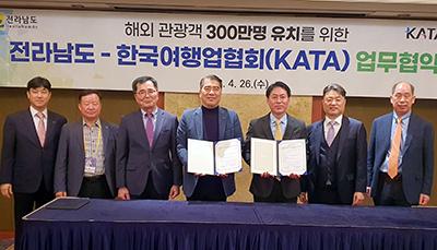 전남도가 26일 서울 롯데호텔에서 한국여행업협회와 관광상품 공동 개발·홍보를 위한 전남 관광 활성화 업무협약을 맺었다.