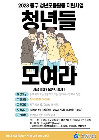 모집 대상은 관내 거주하거나 직장에 다니는 만 19~39세 청년, 3명 이상으로 구성된 모둠(동아리·모임·단체)이다. 참여를 희망하는 청년들은 동구청 방문 또는 이메일(bzg0937@korea.kr)로 접수하면 된다.