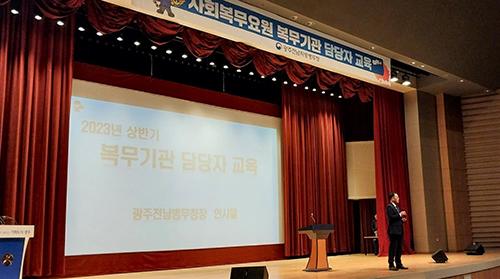 이번 교육은 광주·전남지역 1180여 개 복무기관 담당자들의 업무 역량 강화를 통해 사회복무요원의 효율적인 복무관리와 사회복무요원의 근무여건 개선을 위해 마련했다.